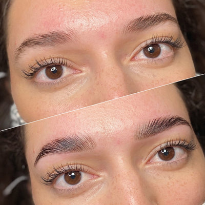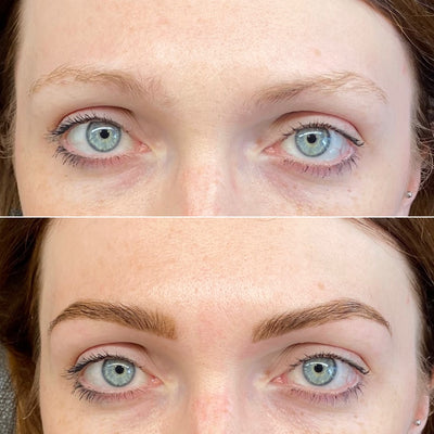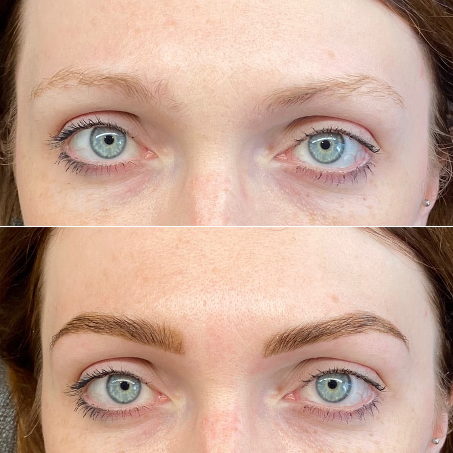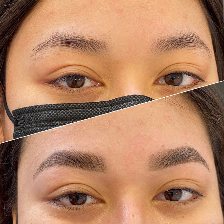Results last 6–8 weeks. Looks amazing over previously microbladed or tattooed brows.