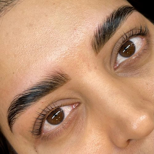 A brow-smoothing treatment that lifts, softens, and restructures the brow hairs for a fuller, fluffier look. It creates soft volume and redirects the hairs without the stiffness of brow gel.